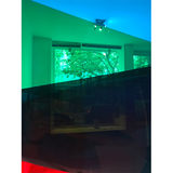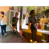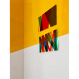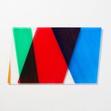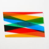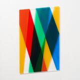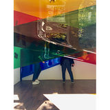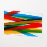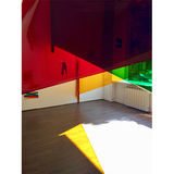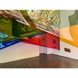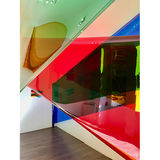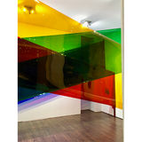 Re-interpreting traditional painting materials, the gallery space is used as the support or ‘canvas’ for the translucent coloured films which stretch diagonally across the space. These films become the ‘paint’.