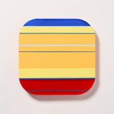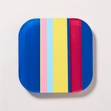 Simple paintings in a retro palette. Canvas awnings from another time, recalling a beach holiday in a small space.
