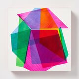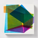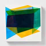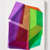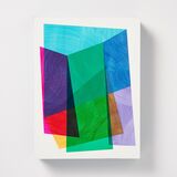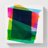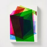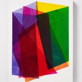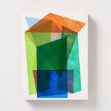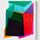 The language of hard-edge abstraction provides rigid, straight-edged, constricting boundaries to the house-boxes, and the gestural brush marks inside the shapes suggest activity - the movements and interactions, gentle and frenetic, of the inhabitants isolated inside their houses. The layering of bright translucent pigments demonstrates colour mixing in a formal sense … and suggests that all is not lost.