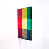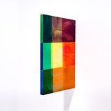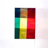 The three works in Fenestrae take their form from the idea and act of looking through a window or portal, with alternate vistas depending on which side the viewer is situated. As such, the painted Perspex panels are attached perpendicularly to the plane of the wall, allowing viewing from either side, and light to pass through.